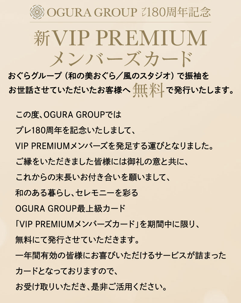 プレ180thVIP PREMIUMメンバーズカードご招待会2025年11月10日 プレ180thVIP PREMIUMメンバーズカードご招待会 お名前 必須 ふりがな ご住所 必須 ご連絡のつきやすい電話番号 必須 メールアドレス ※ご入力されたメールアドレスにご入力情報メールが配信されます。 ご希望会場 必須※場合により日時の再調整をお願いする場合がございます。予めご了承ください。 ---【イオンモール上尾店】1月16日(金)【イオンモール上尾店】1月17日(土)【イオンモール上尾店】1月18日(日)【イオンモール下妻店】1月16日(金)【イオンモール下妻店】1月17日(土)【イオンモール下妻店】1月18日(日)【ベルモール宇都宮店】1月23日(金)【ベルモール宇都宮店】1月24日(土)【ベルモール宇都宮店】1月25日(日)【アリオ鷲宮店】1月23日(金)【アリオ鷲宮店】1月24日(土)【アリオ鷲宮店】1月25日(日)【古河総本店】1月30日(金)【古河総本店】1月31日(土)【古河総本店】2月1日(日)【ハーヴェストウォーク小山店】1月30日(金)【ハーヴェストウォーク小山店】1月31日(土)【ハーヴェストウォーク小山店】2月1日(日)【インターパーク宇都宮店】2月6日(金)【インターパーク宇都宮店】2月7日(土)【インターパーク宇都宮店】2月8日(日)【マルイ大宮店】2月6日(金)【マルイ大宮店】2月7日(土)【マルイ大宮店】2月8日(日) 来場ご希望時間(時)必須 ---10時11時12時13時14時15時16時17時18時19時 ご来店ご予約特典(必須)AorBいずれか1点お選びください。 A クオカードB 資生堂 スキンケアコットン 引き渡し期間だけの限定特典(必須)いずれか1点お選びください。 パール糸替え・新品仕上げ磨き 無料洗える着物 プレゼント希望しない きもの&ジュエリープレゼント(必須)いずれか1点お選びください。 唐草紋様白生地誕生石ルース希望しない ※数に限りがございますので、応募多数の場合は抽選にてお知らせいたします。 お問い合わせ連絡事項がある場合はご記載ください ■和の美おぐら 店舗一覧 和の美おぐら 古河店 茨城県古河市下辺見2140-3 電話番号:0280-32-2321 営業時間:10:00~19:00定休日:月曜日〈祝日は営業〉 和の美おぐらイオンモール下妻店 茨城県下妻市堀籠 972-1 イオンモール下妻 2F 電話番号:0296-30-6171 営業時間:10:00~21:00定休日:なし 和の美おぐらイオンモール上尾店 埼玉県上尾市愛宕3丁目8番1号 イオンモール上尾 2F 電話番号:048-783-5092 営業時間:10:00~21:00定休日:なし 和の美おぐらアリオ鷲宮店 埼玉県久喜市久本寺谷田7-1 アリオ鷲宮 2F 電話番号:0480-53-5800 営業時間:10:00~21:00定休日:なし 風のスタジオ Le Lien川越 ウニクス南古谷店 埼玉県川越市泉町3-1 ウニクス南古谷店 2F 電話番号:049-293-5991 営業時間:10:00~19:00定休日:火曜日〈祝日は営業〉 和の美おぐらハーヴェストウォーク小山店 栃木県小山市喜沢1475 おやまゆうえんハーヴェストウォーク 電話番号:0285-38-6112 営業時間:10:00~20:00定休日:なし 風のスタジオ CORO イオンタウン真岡店 栃木県真岡市台町2668 イオンタウン真岡店 電話番号:0285-81-6960 営業時間:9:00~18:00定休日:火曜日(祝日は営業) 和の美おぐら ベルモール宇都宮 栃木県宇都宮市陽東6-2-1 ベルモール宇都宮店 2F 電話番号:090-1668-7560 営業時間:10:00~21:00定休日:なし 和の美おぐらインターパーク宇都宮店 栃木県宇都宮市インターパーク4-1-3 インターパークショッピングビレッジ 電話番号:028-688-7412 営業時間:10:00~20:00定休日:なし カテゴリ:アリオ鷲宮店/イオンモール上尾店/イオンモール下妻店/インターパーク宇都宮店/ハーヴェストウォーク小山店/ベルモール宇都宮店/催事のご案内/古河店