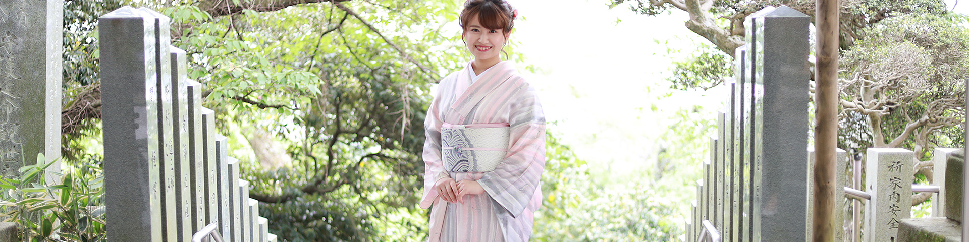 成人式の振袖を選んだ時に着方教室の見学をしたのがきっかけで、習うようになりました。前結びは帯結びがキレイにでき、友人の結婚式に訪問着を自分で着て参加した時は、周りの方々に褒められ嬉しかったです。また、先日は小紋に博多帯を結んで試験を受けに行きました。将来は講師になって着付けの仕事をしたいと思っています。個人的には母と三姉妹で、きものでどこかにお出かけしたいなという夢も持っています。
